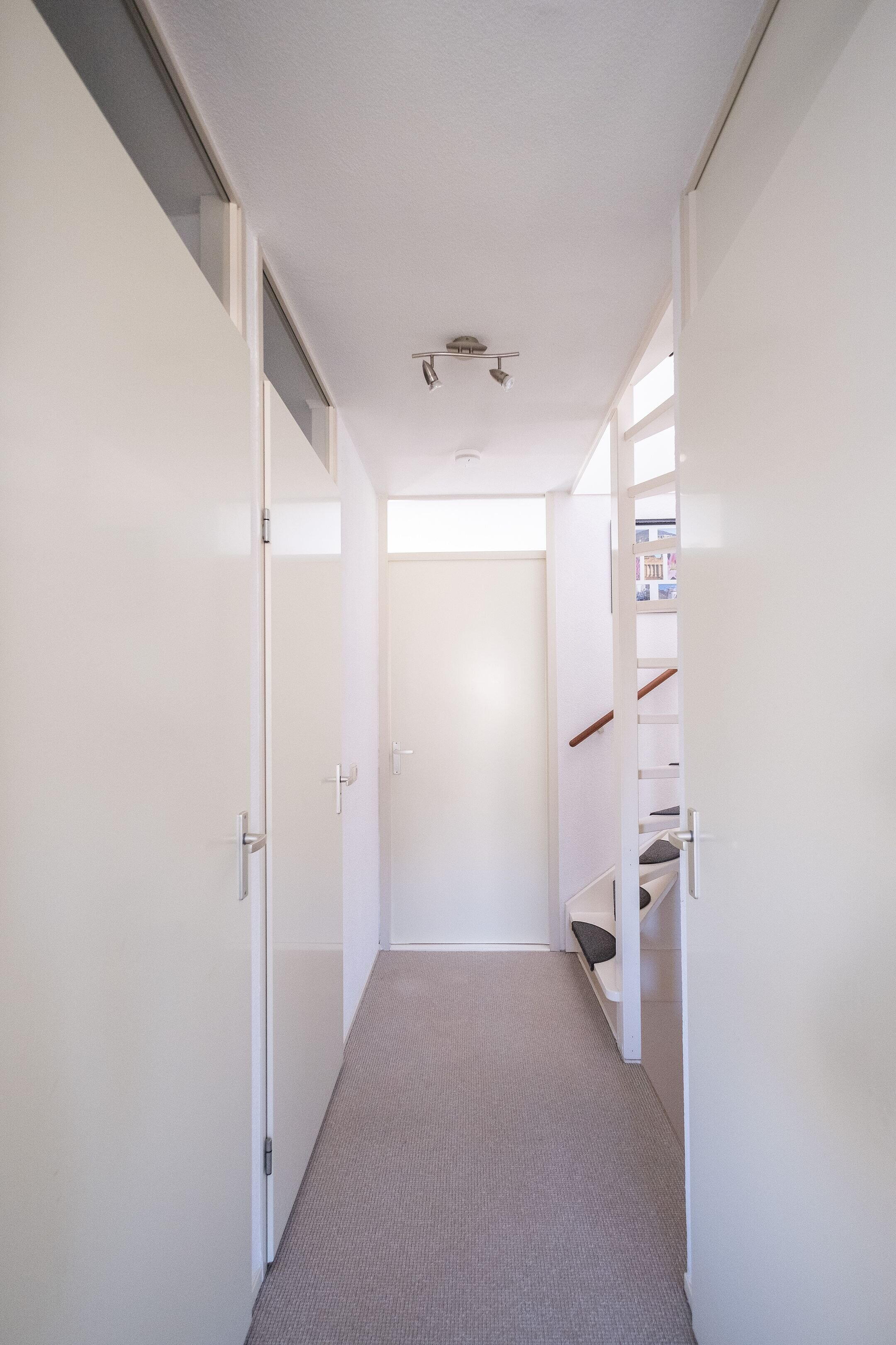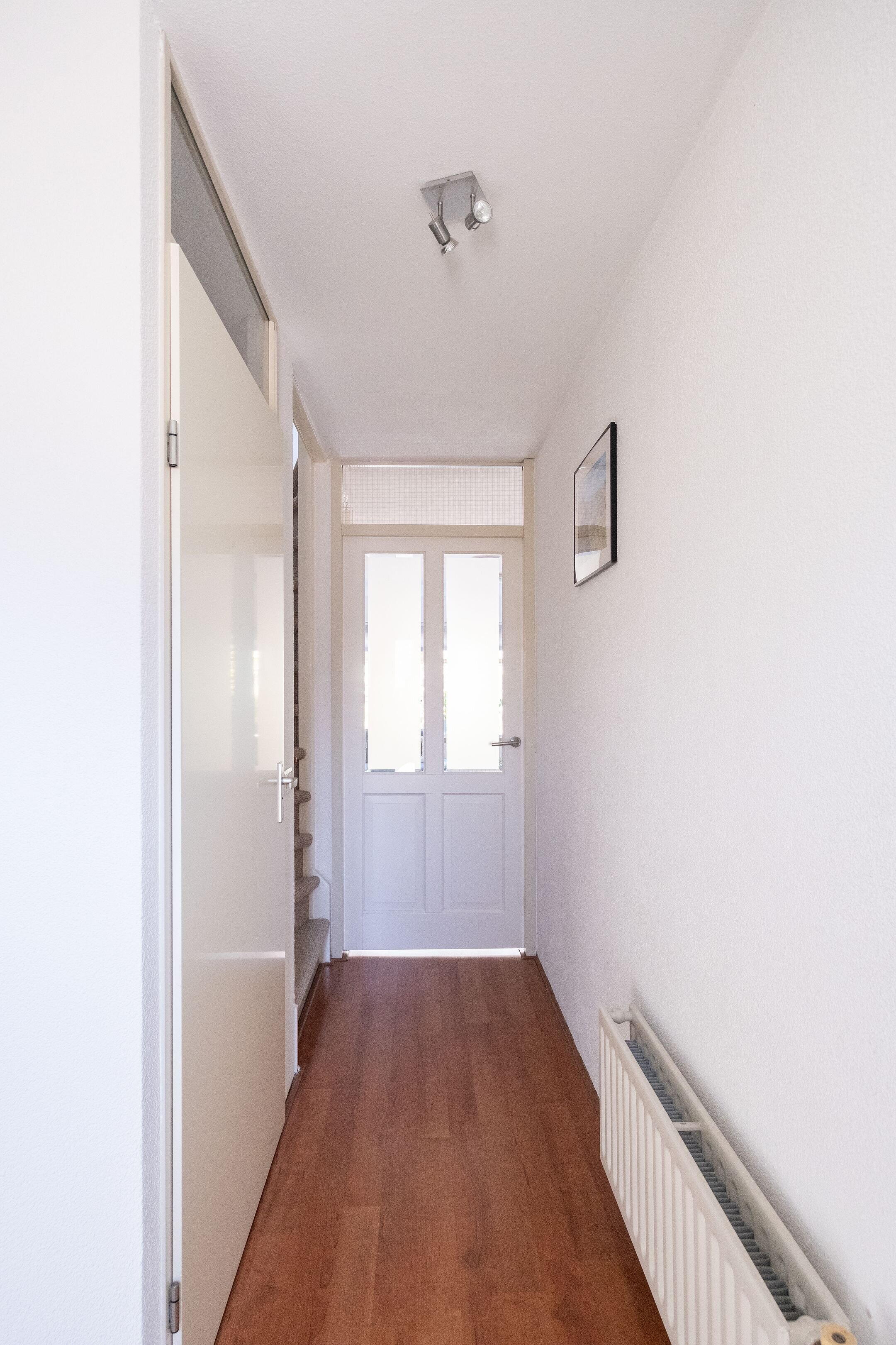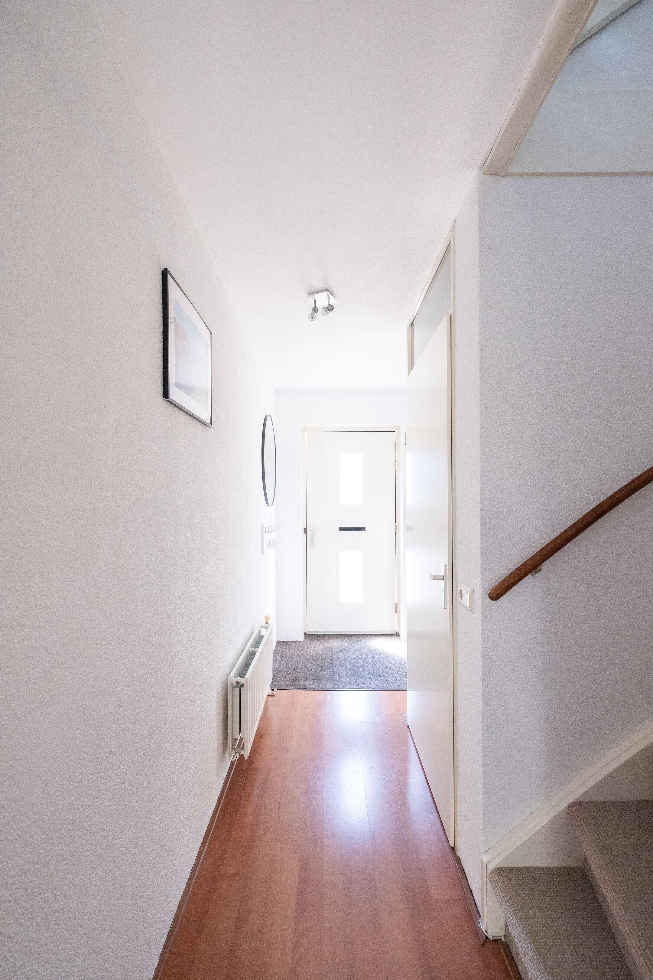 Via de entree kom je in de hal met meterkast (7 groepen, 1 fase) en trapopgang. De woonkamer is licht en ruim afgewerkt met een laminaatvloer en biedt voldoende ruimte voor zowel een zithoek als een eetgedeelte.