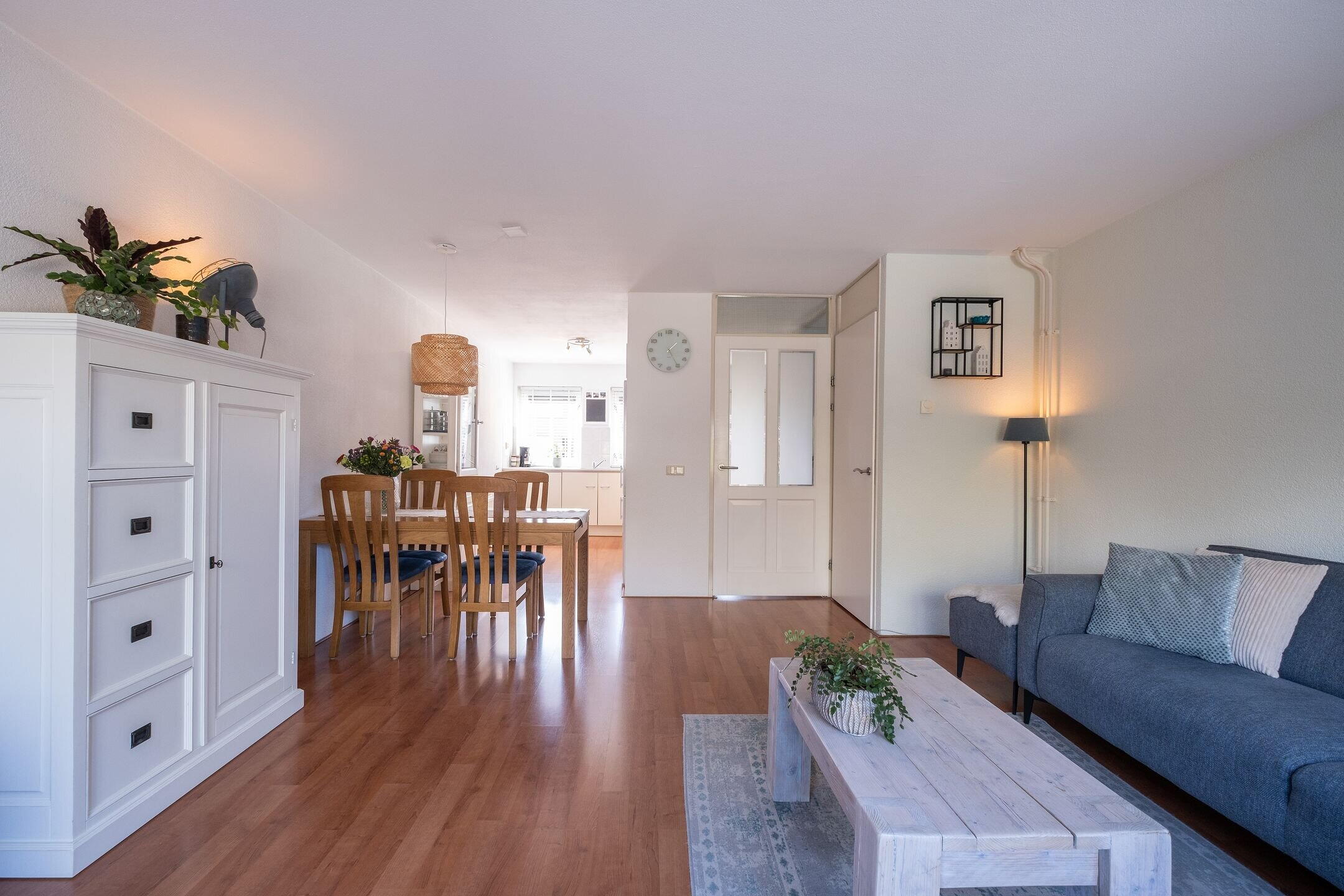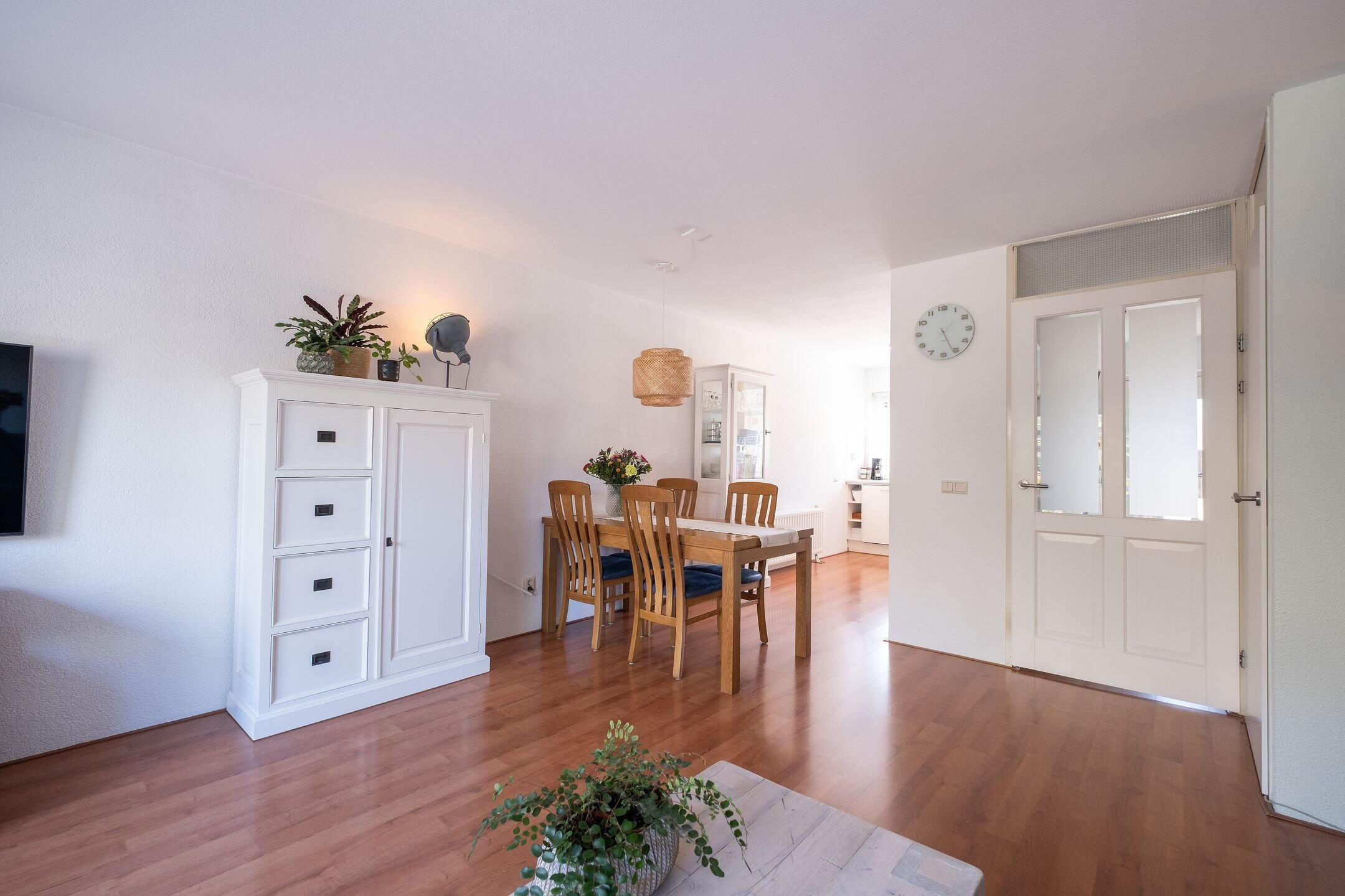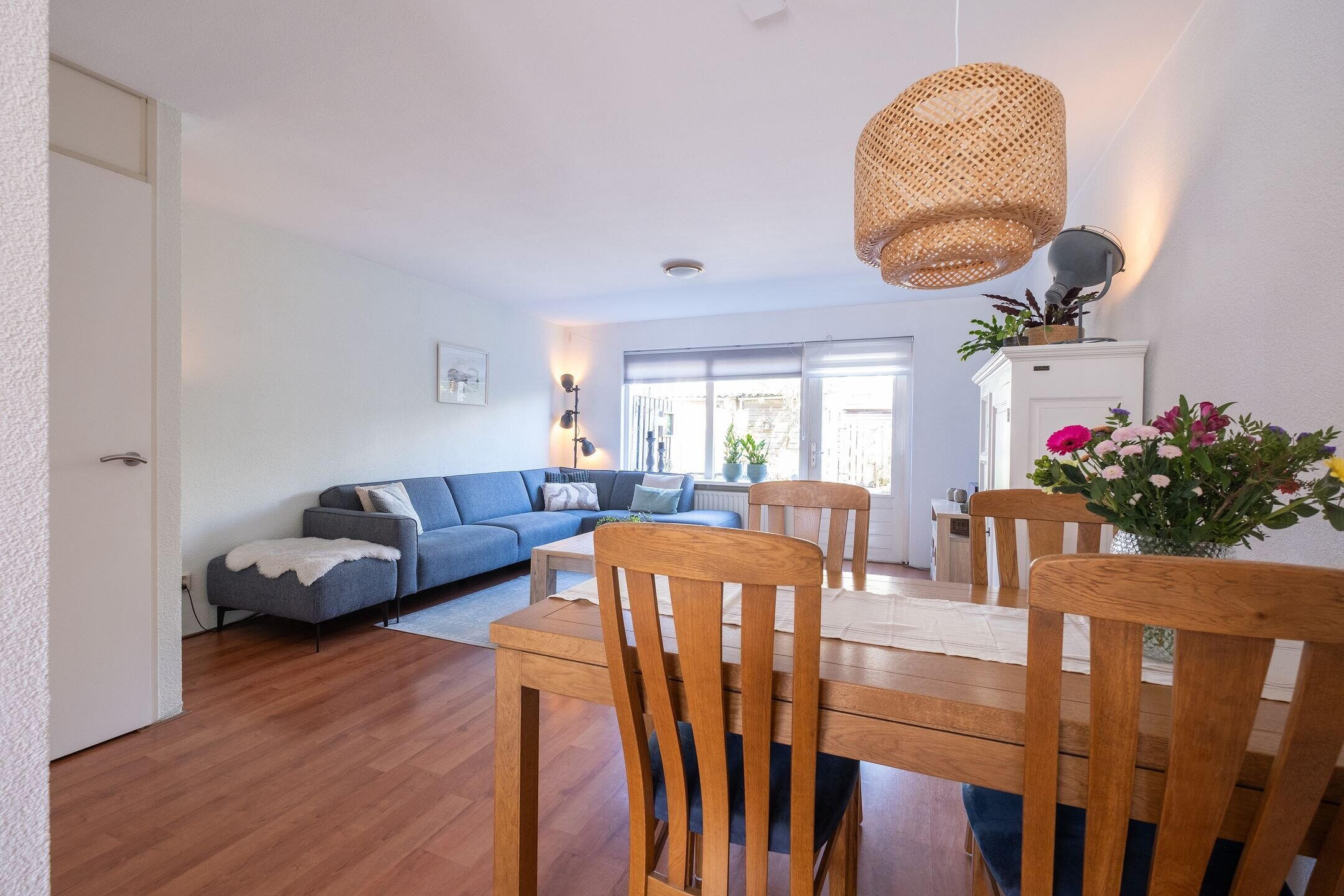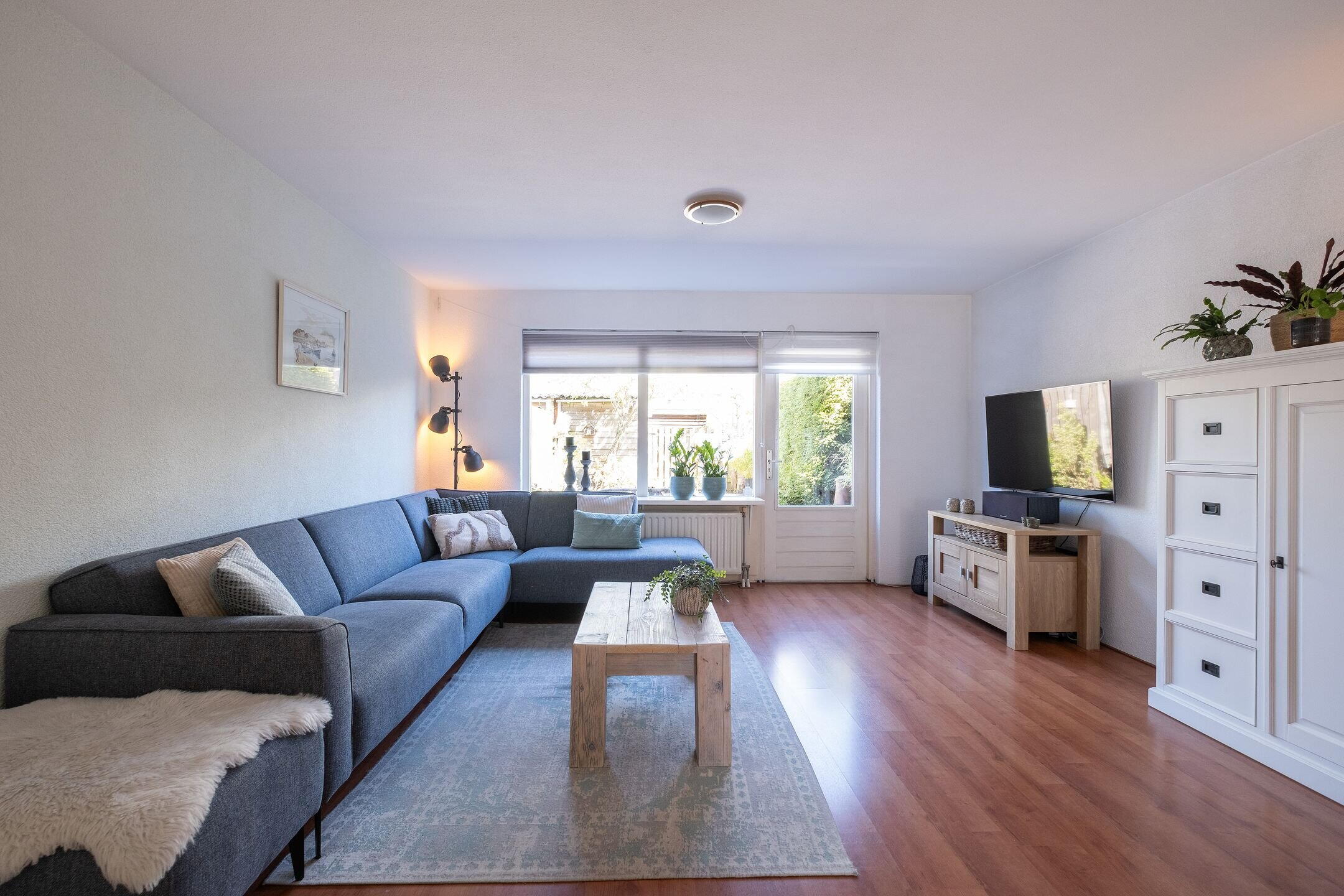 Via de entree kom je in de hal met meterkast (7 groepen, 1 fase) en trapopgang. De woonkamer is licht en ruim afgewerkt met een laminaatvloer en biedt voldoende ruimte voor zowel een zithoek als een eetgedeelte.