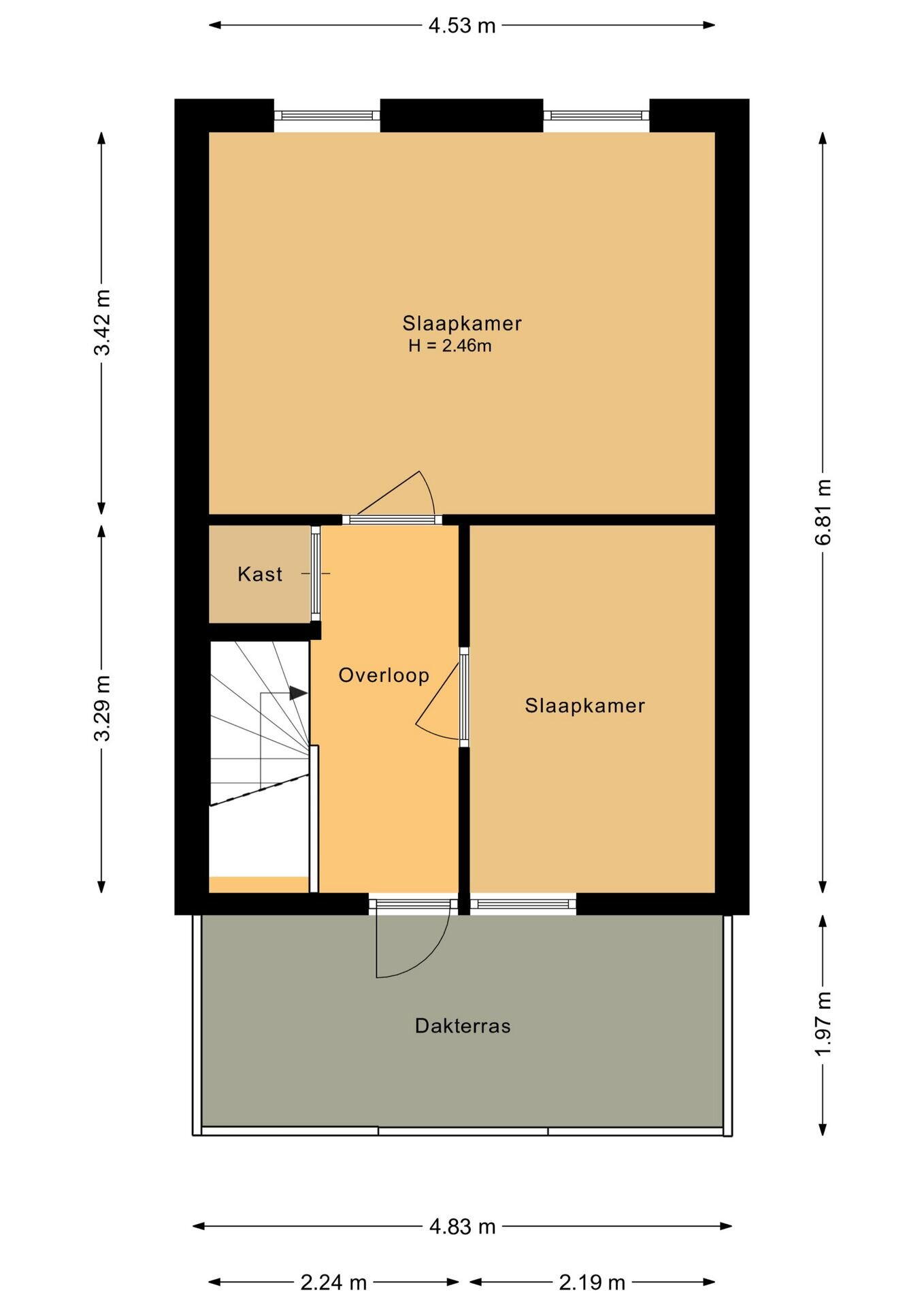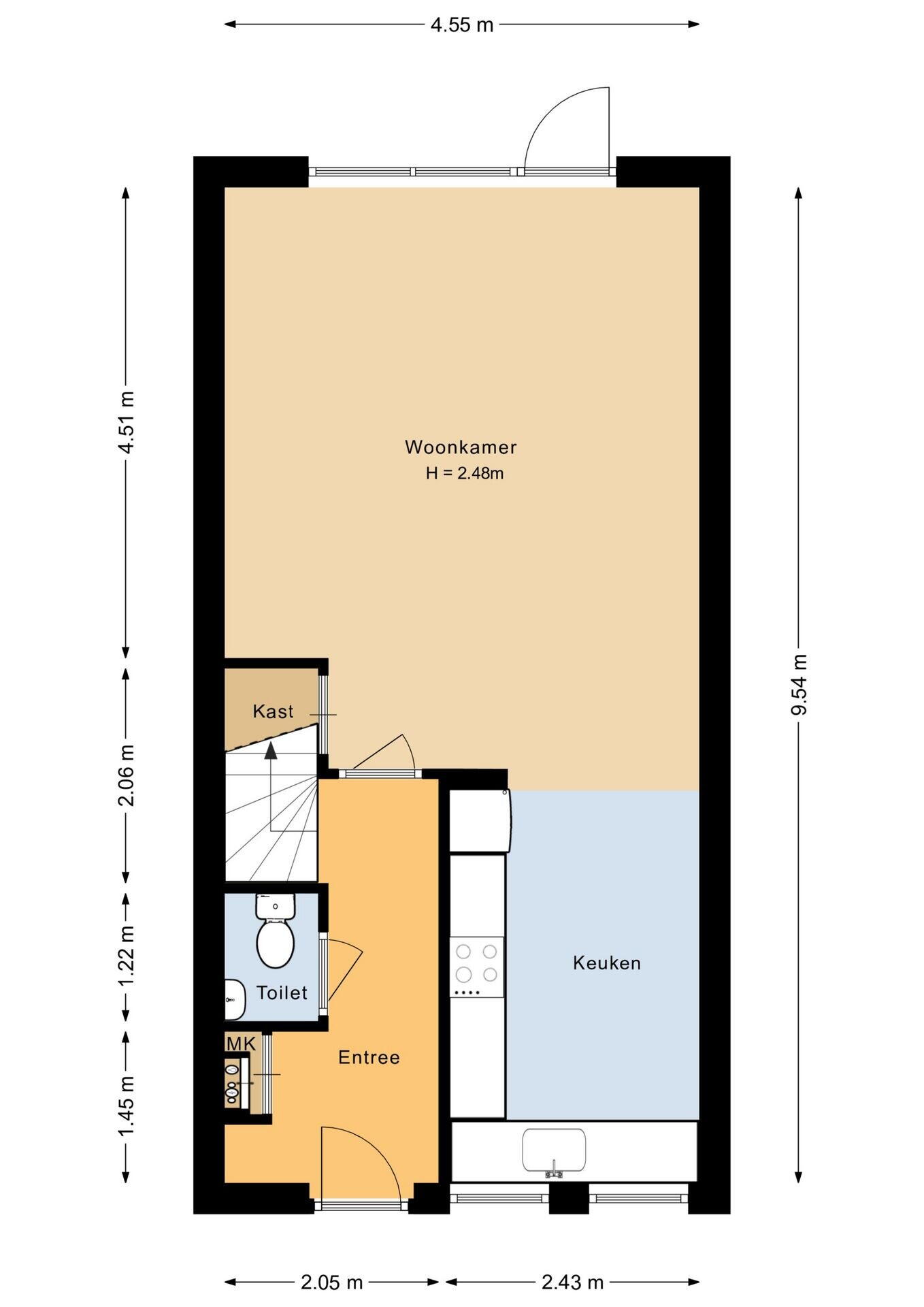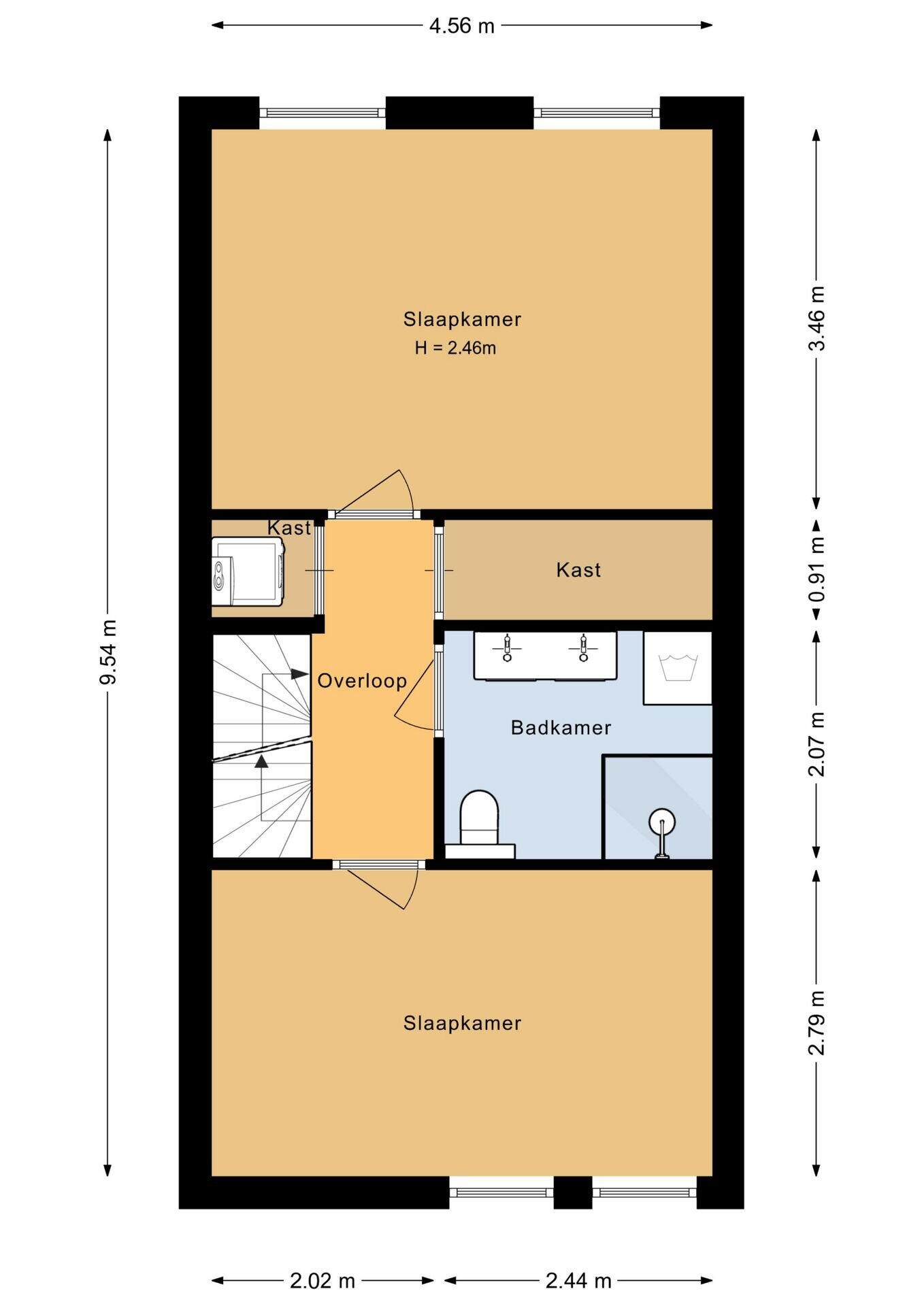 - 56 m² (11,51 meter diep en 4,86 meter breed)